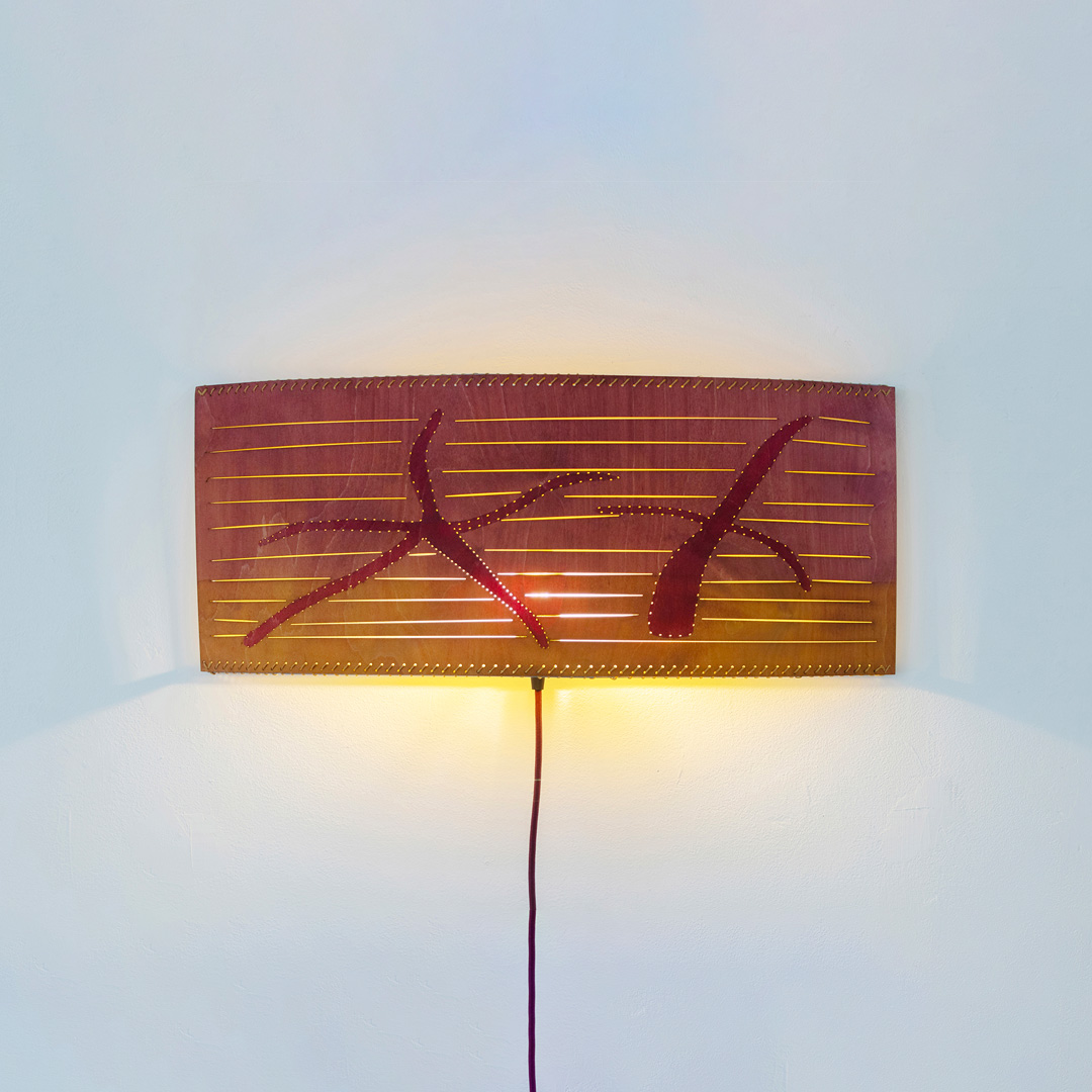Stained + Laser-cut Birchwood, Steel, Embroidery Thread