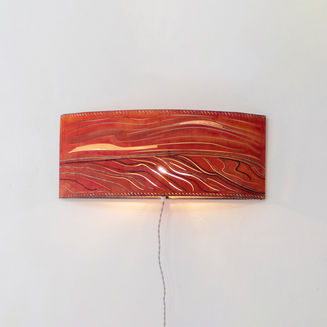 Stained + Laser-cut Birchwood, Jute, Copper Foil, Steel, Embroidery Thread