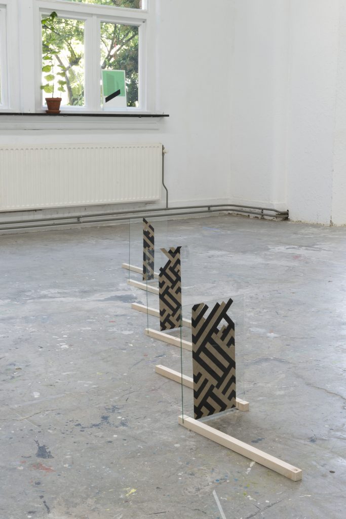 Uitwerking en aanwezigheid van andere werken tonen in tweede instantie eerder aarzeling dan een statement. Nelleke Schiere lijk zich in haar werk zowel aangetrokken te voelen door de formeel abstracte beandering van de relatie tussen kunst en de fysieke omgeving als zich er van te distantieren. Vanuit haar architectonische achtergrond is het zoeken naar de balans tussen beiden herkenbaar. Daar lijkt namelijk noch ruimte voor discussie, noch voor ontwikkeling of kritiek. In haar werk spreekt de vertwijfeling over die benadering van kunst en ruimte. In de abstracte, theoretische zijn (nog) schuchter de persoonlijke overdenkingen zichtbaar in kwetsbare lijnenspellen, uitgebalanceerde. kleurenschema's en verfijnde materiaalkeuzes. Alles beweegt, maar alleen een dode vis laat zich immers gewillig meevoeren.