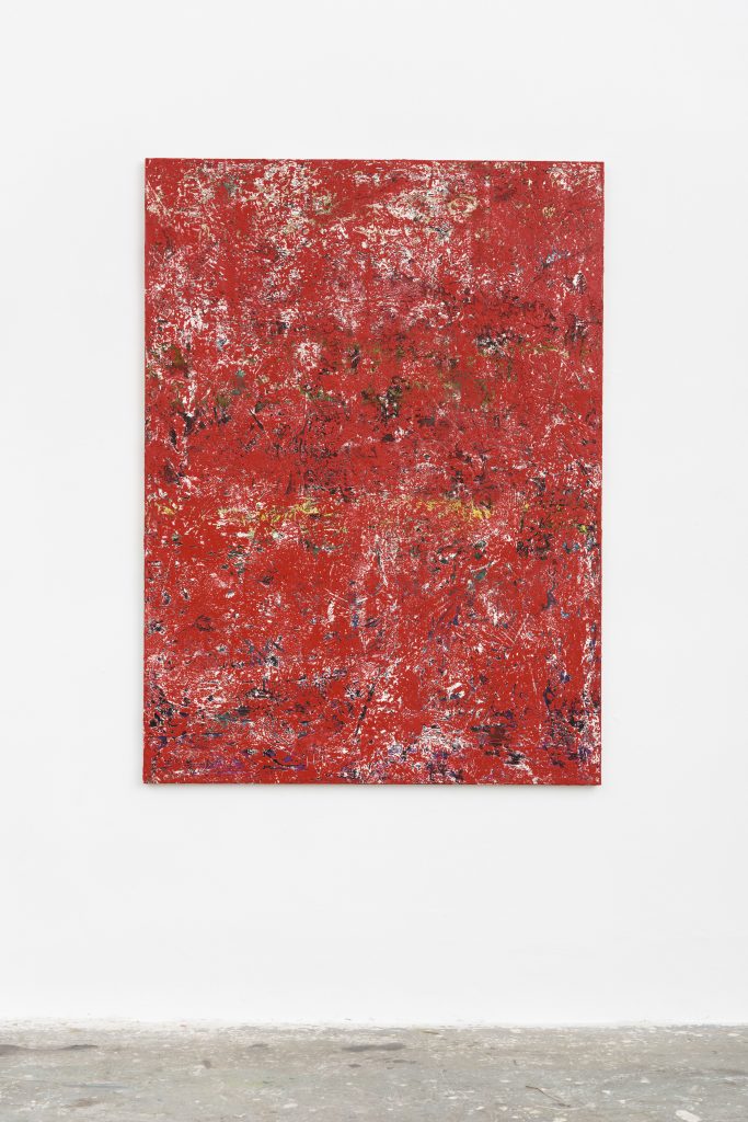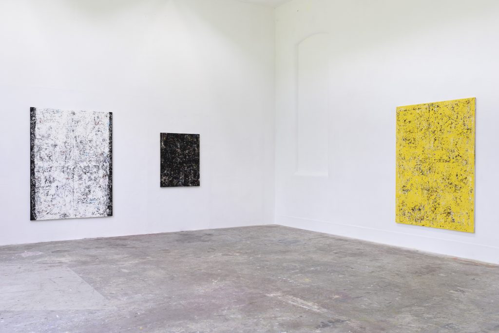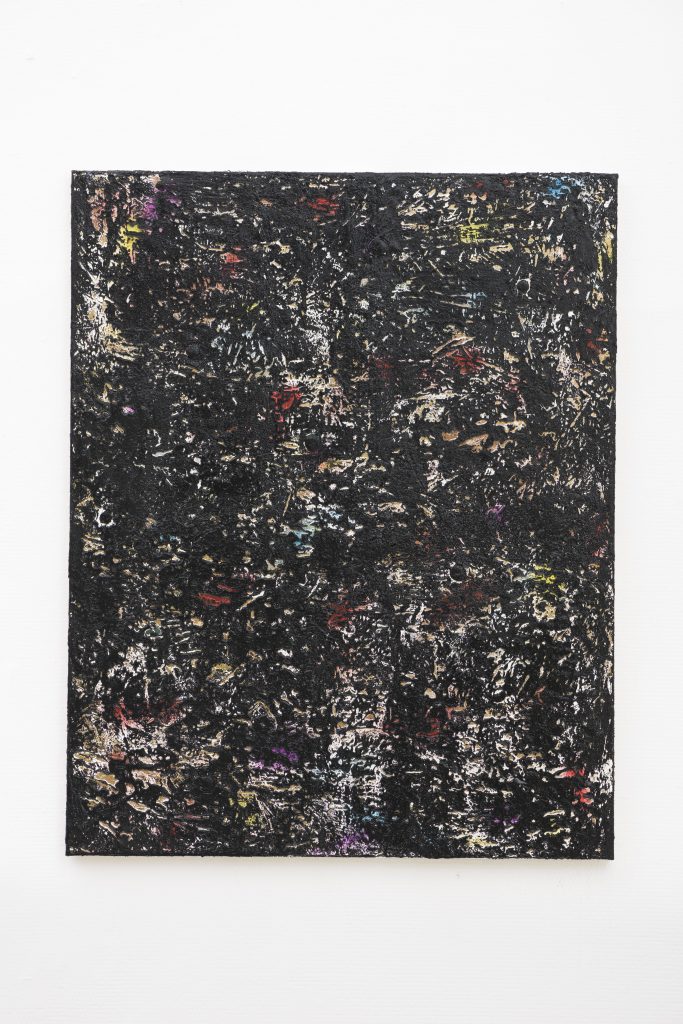 It’s an imperfect comparison for evidently formalist painting, but photographic references in terms like “contact prints,” “photo transfers,” “negatives,” and “emulsion” are hard to avoid when thinking about Steven Cox’s minimally-arranged texture collages and canvases treated with all-over brushless painting techniques. In the way that a photographer notices and emphasizes parts of the world around them, Cox’s canvases seem to organize and collect found textures, material histories, literary and musical references from their immediate surroundings, rather than espousing a pre-composed message[...]Poems and his studio soundtrack float into his titles, like poet Robert Burns’ “My Heart’s In The Highlands,” Billy Joel’s “Somewhere Along the Line,” and the Beastie Boys’ “Hot Sauce.”